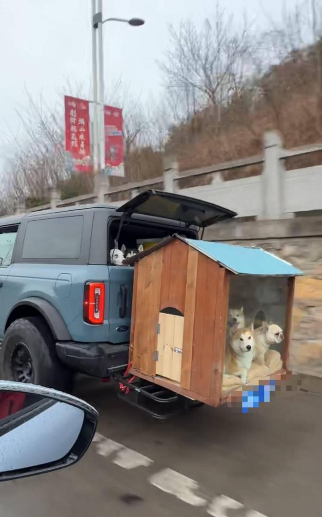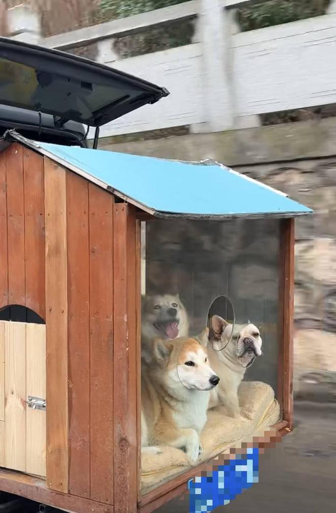 小红书宠物博主周先生今年做了一个大胆的决定——把家里9条狗狗全部接回家过年,其中包括哈士奇、柴犬、斑点狗等大型犬和法斗、柯基等中型犬。为了安排好这些“乘客”,周先生准备了一台越野车,在后备箱放了5只狗,其余4只则被安置在透明的狗房子里,放置在越野车托运行李架子上。9只“毛孩子”连狗带窝“一锅端”带回了家。