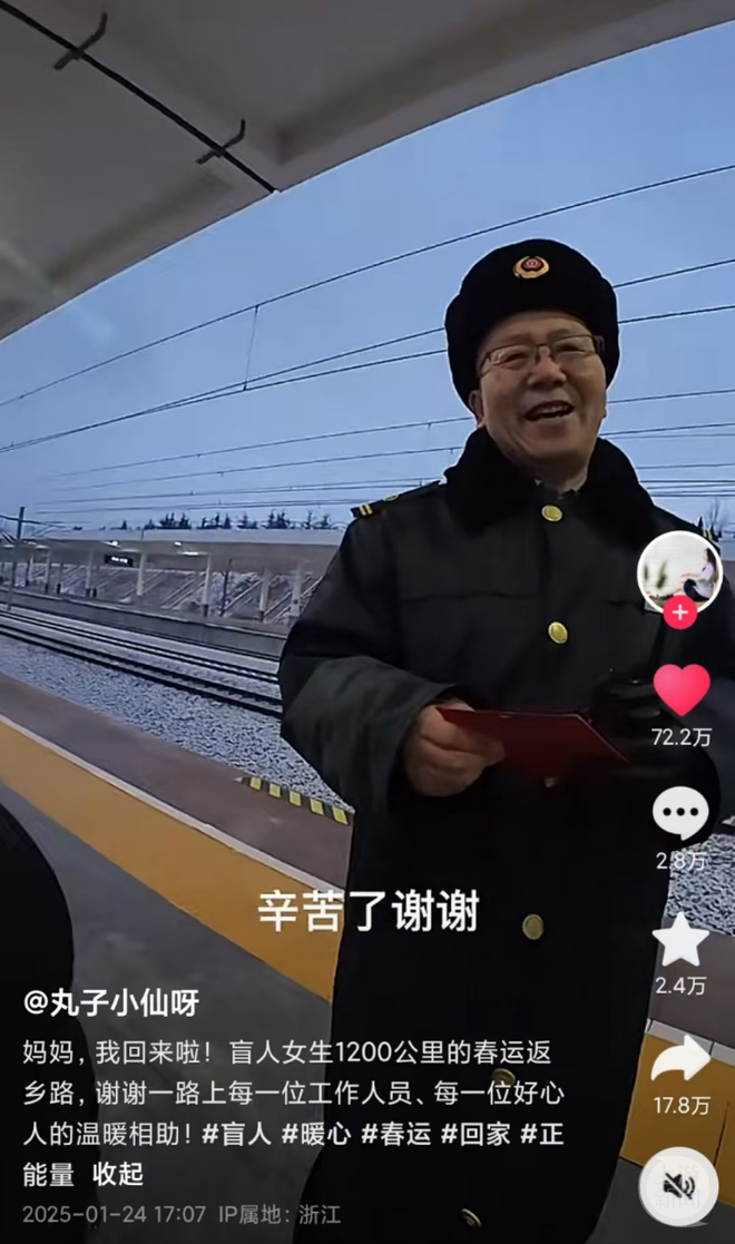 26日,中国铁路济南局集团有限公司也回应上游新闻记者表示,为特殊重点旅客提供服务其实只是铁路工作的常态,但这个春运路上的温暖故事也让他们感动,他们的官方账号不仅转发了这段视频,也发了铁路工作人员的回应。
