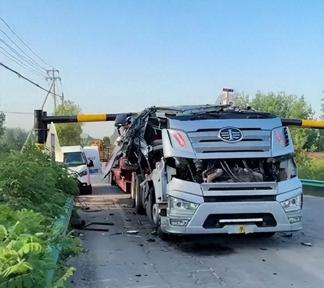 货车夜撞限高栏被“削顶” 司机受伤引关注交通局回应称已设通告