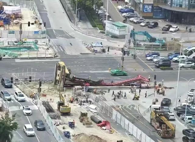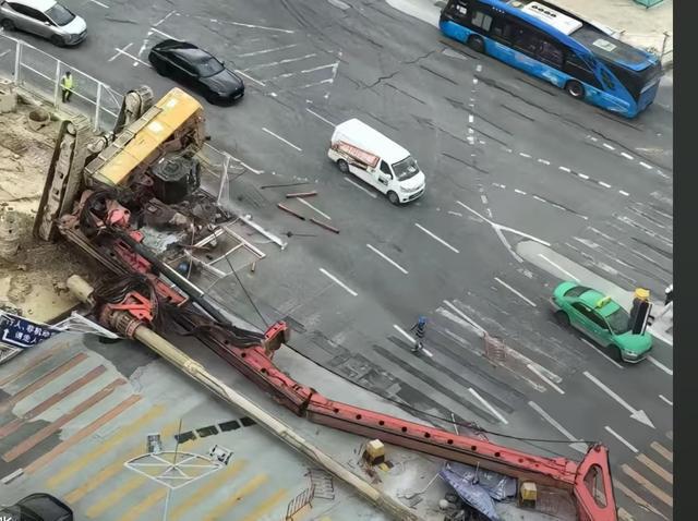 珠海街头惊险一幕:20米高桩机侧翻斑马线,幸无人员伤亡
