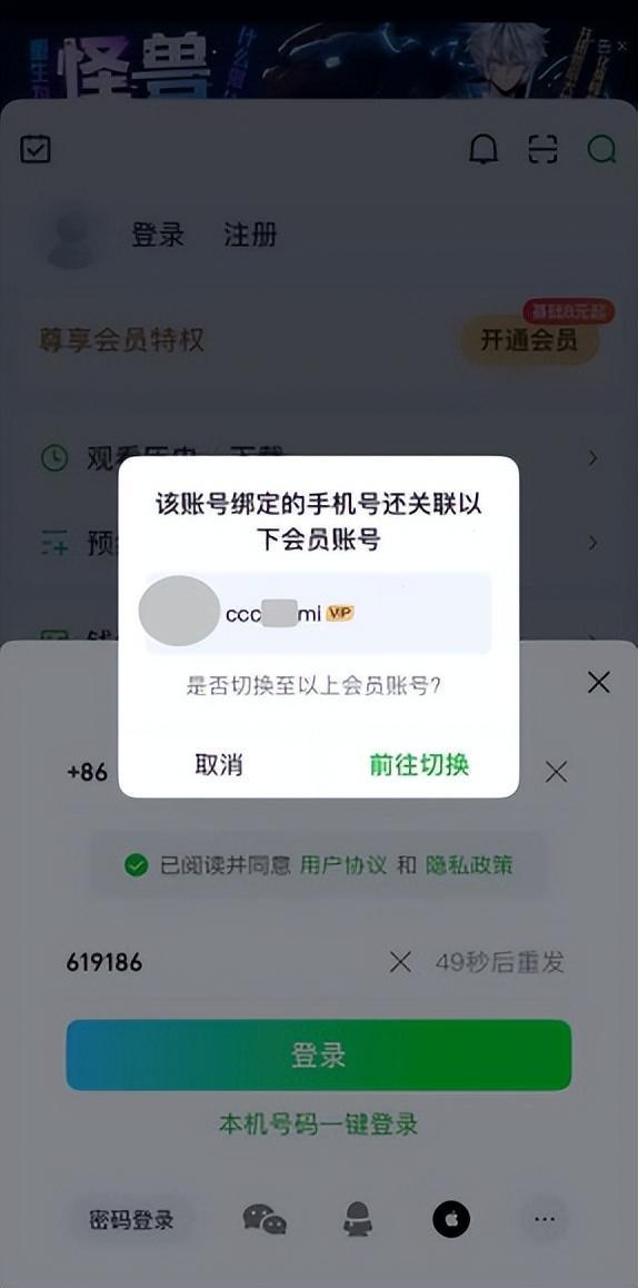 新手机登录爱奇艺却被注册新账号,原会员账号无法使用