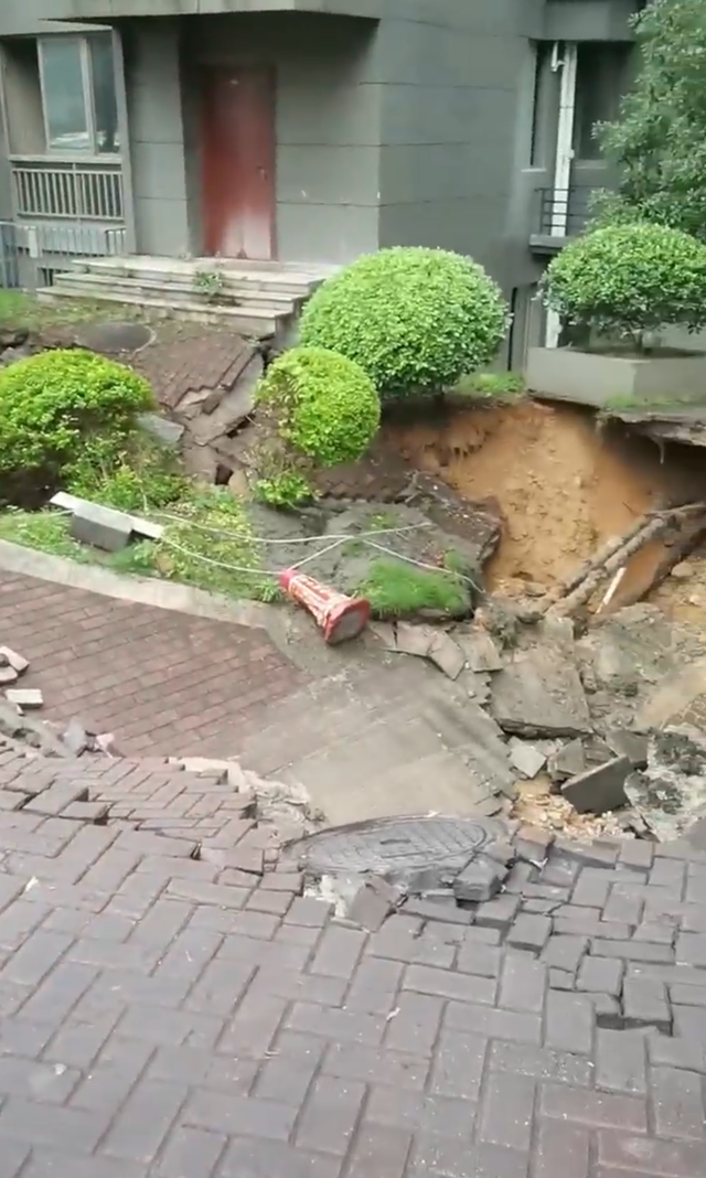 福州一小区路面清晨坍塌,物管:因水管爆裂已修复