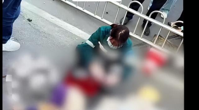 从视频中可以看到,事故车辆停在道路中央,车头因剧烈碰撞严重变形,部分零件散落一地。路边护栏被撞断并移位,非机动车道上的几辆电动车也被撞倒,现场有多人受伤倒地。医护人员迅速赶到现场展开紧急救治,但据目击者称,事故已导致一名女子不幸身亡。