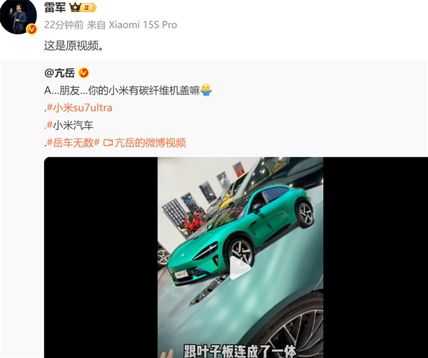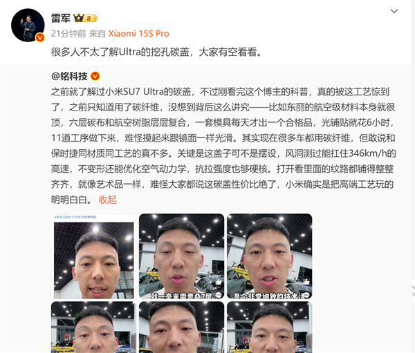 博主科普SU7Ultra碳盖小米把高端玩明白雷军喊话大家有空看看