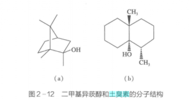 2-甲基异莰醇和土臭素,二者也是生活污水中常见的臭味物质 | 图源:侯立安、董丽华:《活性炭与水净化》